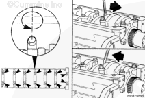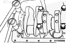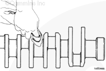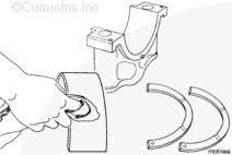 The end of the lower main bearing shell opposite the dowel ring must be engaged between the crankshaft and the cylinder block and be seated against the end of the upper bearing shell.