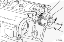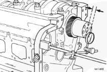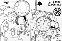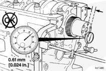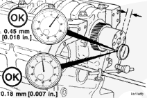 Measure the crankshaft end clearance. The end clearance specification for a new or reground crankshaft with new thrust bearings is 0.18 mm [0.007 in] to 0.45 mm [0.018 in].