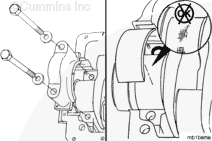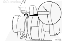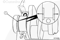 NOTE: Crankshafts that have been reground on the thrust bearing surfaces are marked for oversize thrust bearings on the rear crankshaft counter weight. If the crankshaft counter weight is marked, check the thrust ring part number to make sure the correct thrust ring size is used.