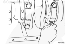 Turn the crankshaft by hand. If it does not turn freely, loosen the main bearing capscrews one cap at a time. This will help locate the bearing that is too tight.