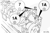 NOTE: If installed correctly, the ends of the bearing shells (1) will meet approximately 1.50 mm [0.060 in] below the cylinder block main bearing mounting surface.