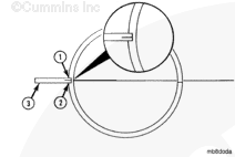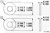 Do not intermix the main bearing dowel ring and the main bearing capscrew washers. The hardened main bearing capscrew washer (1) is approximately 0.76 mm [0.030 in] thicker than the soft main bearing dowel ring (2). Intermixing the capscrew washers and the dowel rings will result in main bearing failure.
