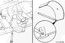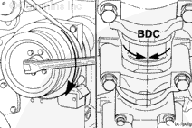 NOTE: Push the connecting rod away from the crankshaft, cover the crankshaft rod journal, and push the connecting rod until the piston rings are outside of the top of the cylinder liner.