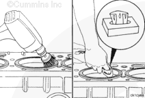 Plug the overhead oil rifle push tube cavities and coolant passages in the cylinder block, and use a rotary wire brush to remove the carbon ring from the top of the cylinder liner. Use a scraper that has an aluminum blade, if a rotary wire brush is not available.
