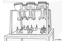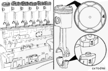 NOTE: The piston crown must have the cylinder numbers stamped on the piston top toward the camshaft side of the engine. The skirt must also be stamped so it can be matched with the piston crown.