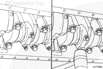 NOTE: The piston crown, skirt, and the connecting rod assemblies must be installed in the same cylinder number they were removed from to make sure proper fit of worn mating surfaces, if parts are used again. Also, the piston skirt and crown must be reinstalled together.