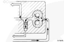 When the oil pressure exceeds 1724 kPa [250 psi] in the lubricating oil pump, for instance during cold start-up, the oil pressure in the pump overcomes the relief valve spring force.